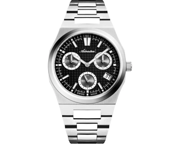 Cechy: datownik, wskazówkowy, sekundnik, wskaźnik 24-godzinny, wskaźnik dnia tygodnia