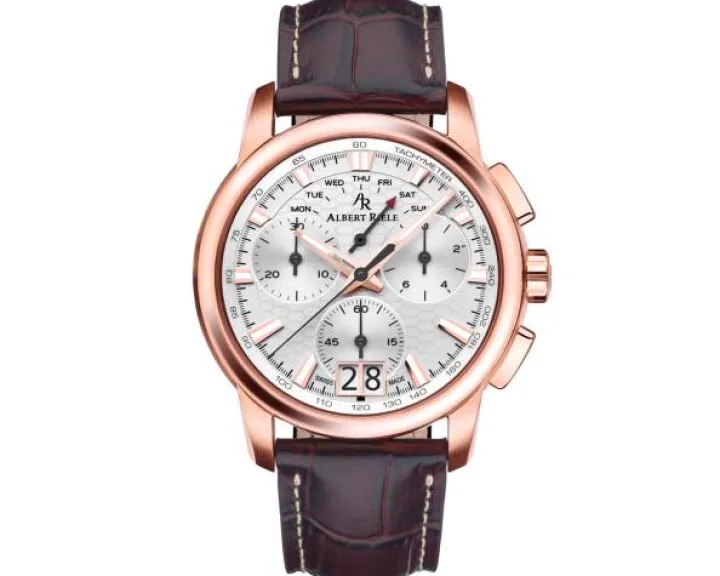 Cechy: zegarek szwajcarski, chronograf, datownik, wskazówkowy, mały sekundnik, tachymetr, wskaźnik dnia tygodnia