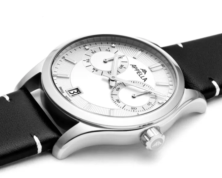 Cechy: datownik, wskazówkowy, mały sekundnik, wskaźnik dnia tygodnia
