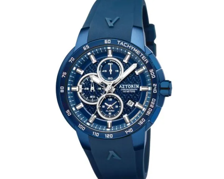 Cechy: chronograf, datownik, wskazówkowy, alarm, mały sekundnik, tachymetr