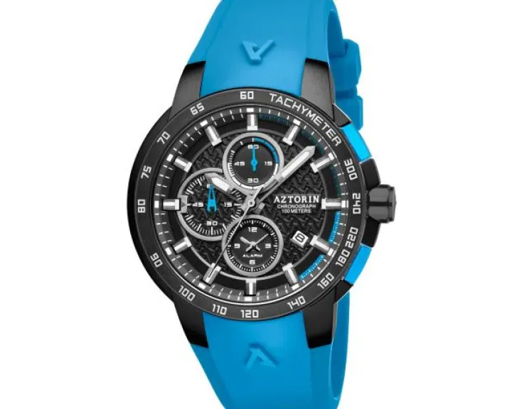 Cechy: chronograf, datownik, wskazówkowy, alarm, mały sekundnik, tachymetr