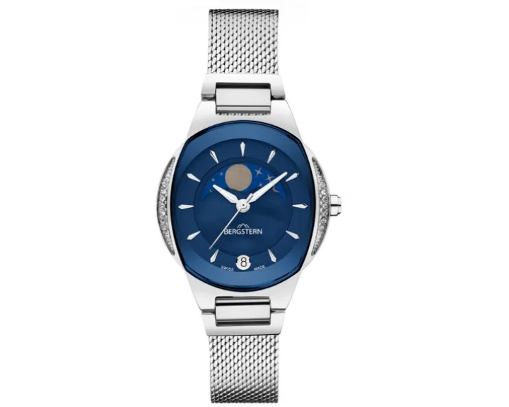 Cechy: datownik, wskazówkowy, sekundnik, wskaźnik faz Księżyca, wskaźnik zużycia baterii
