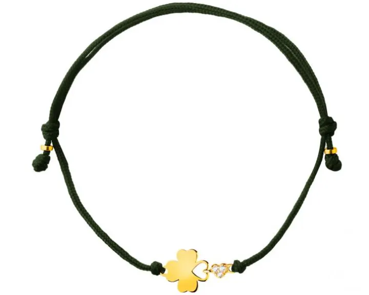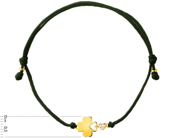 Lekka bransoletka ze złotym sercem, koniczynką i cyrkoniami. Romantyczny i subtelny wzór z regulowanym sznurkiem to propozycja dla kobiet, które poszukują bezpretensjonalnej biżuterii. Bransoletka w takim wydaniu, ozdobiona symbolami szczęścia i miłości, doskonale sprawdzi się zarówno jako dodatek do wielu stylizacji, jak i jako prezent walentynkowy dla dziewczyny lub na urodziny siostry.