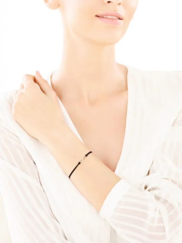 Kolekcjonuj radosne chwile! Delikatna bransoletka, ozdobiona miękkimi liniami złotego symbolu nieskończoności, pozwoli zatrzymać w pamięci szczęśliwe momenty, a diament uwieczni towarzyszące im emocje. Wyjątkowy charakter tej bransoletki podkreśla barwny regulowany sznureczek. Biżuteria ta doskonale współgra z innymi wzorami z kolekcji Fun Fun.