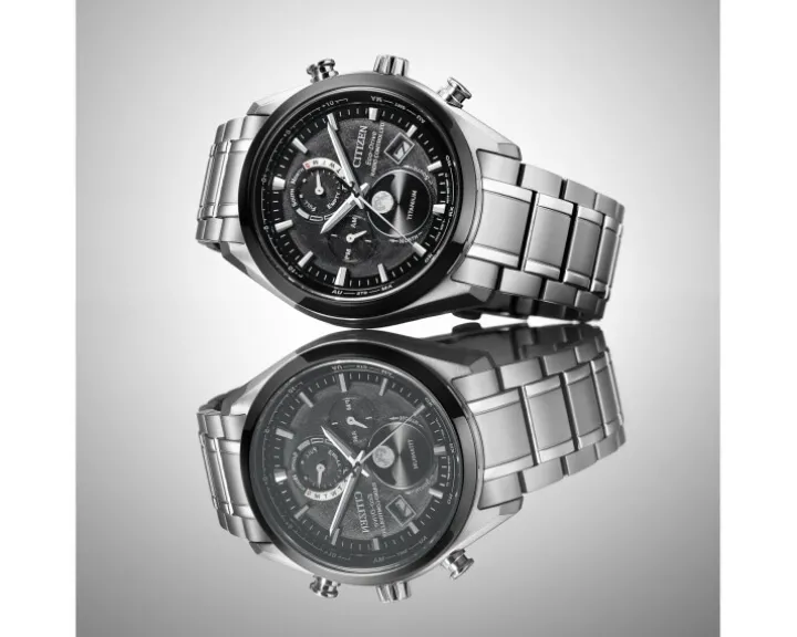 Cechy: datownik, wskazówkowy, sekundnik, wskaźnik 24-godzinny, wskaźnik dnia tygodnia, wskaźnik faz Księżyca, wskaźnik zużycia baterii