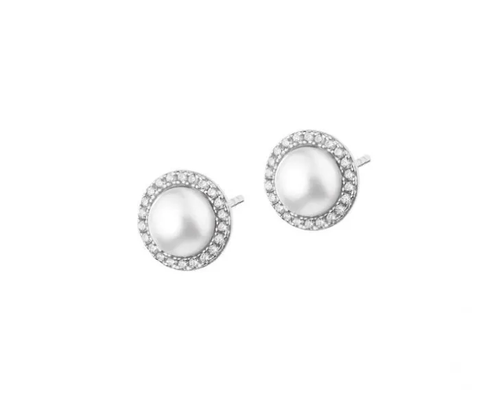 Kolczyki srebrne z perłami i cyrkoniami