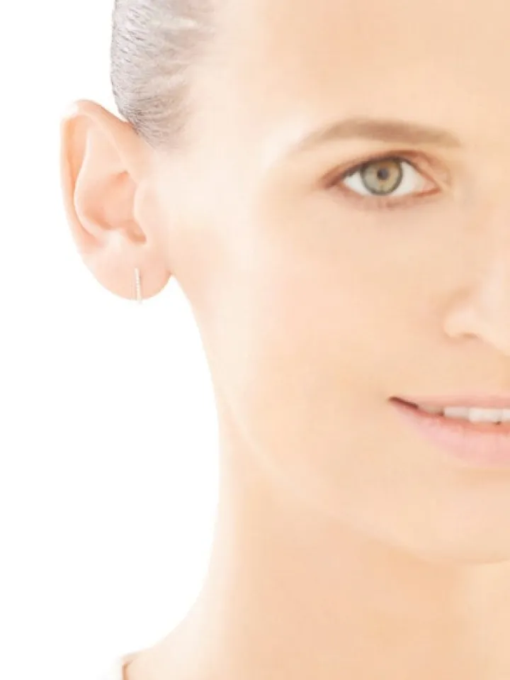 Połyskujące diamentami minimalistyczne kolczyki z białego złota. Ukryte zapięcie typu sztyft eksponuje po założeniu kolczyków ich filigranową formę z białego złota, intensywnie rozświetloną kunsztownie oprawionymi diamentami. Wyróżniające się szlachetną prostotą i diamentowymi refleksami kolczyki doskonale sprawdzą się jako dodatek do wielu stylizacji.