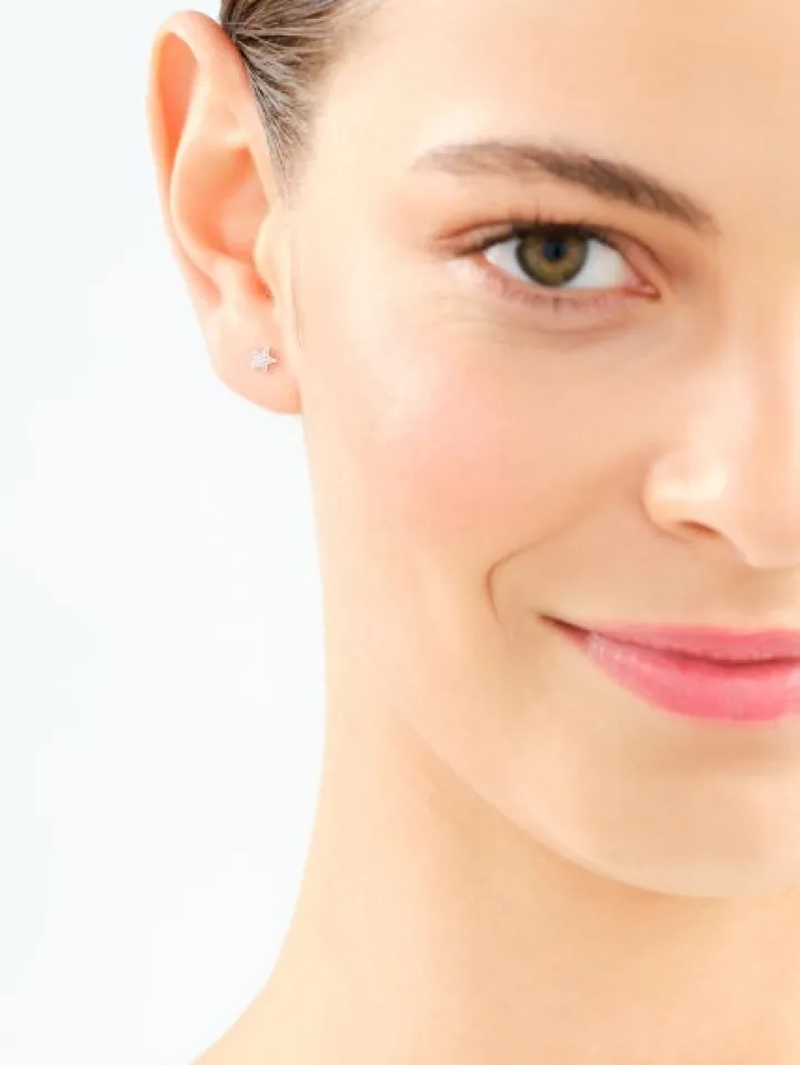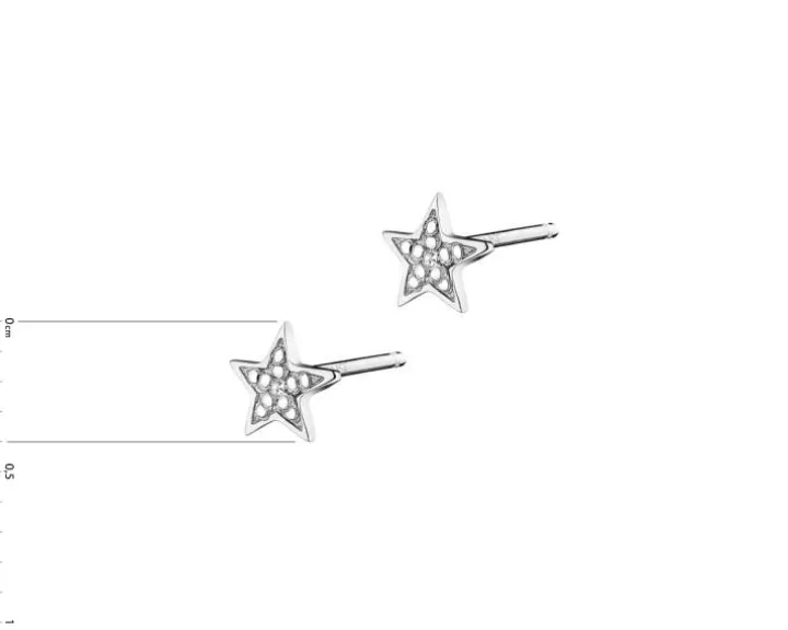 Kolczyki z białego złota z diamentami – gwiazdy – 0,006 ct – próba 585