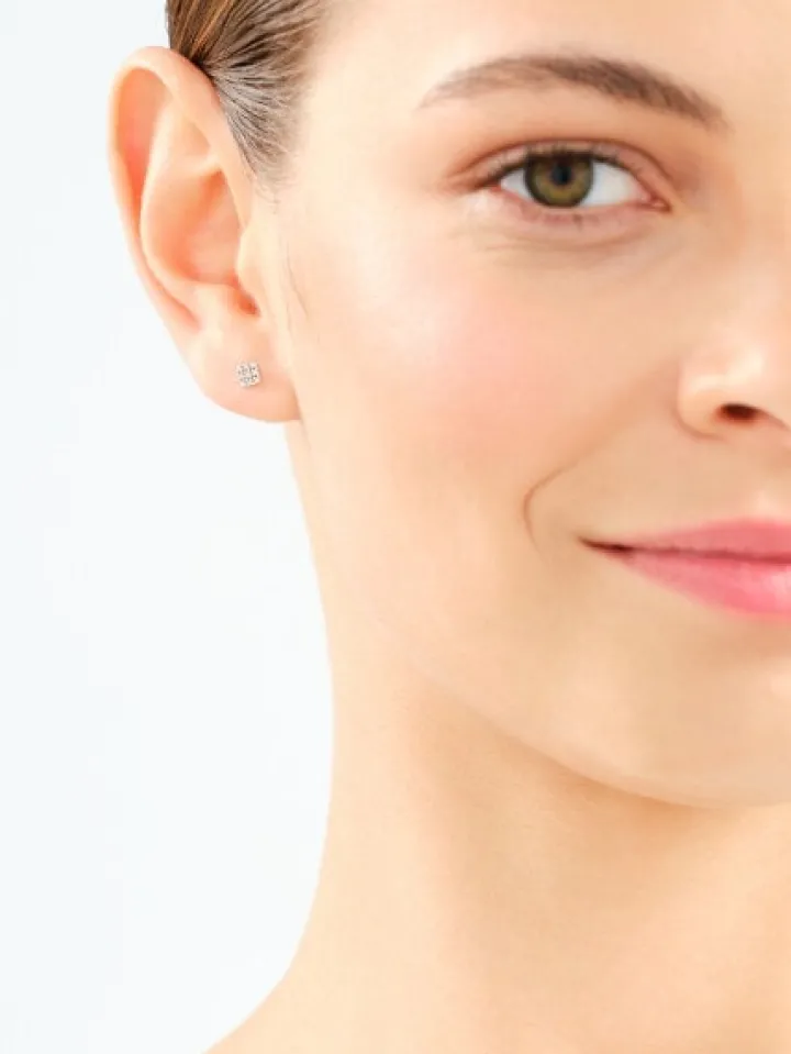 Kolczyki z białego złota z diamentami – kwadraty – 0,05 ct – próba 375