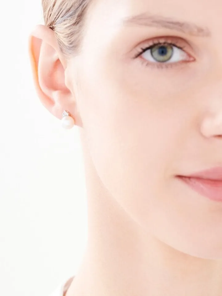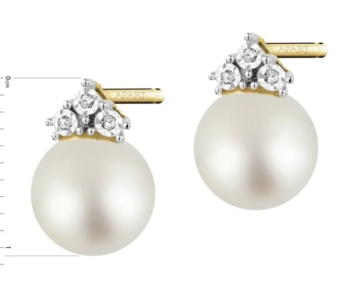 Kolczyki z żółtego złota z diamentami i perłami – próba 585