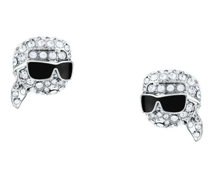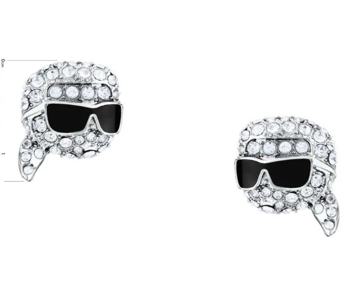 Kolczyki ze stali szlachetnej z cyrkoniami i emalią – główka Karl Lagerfeld