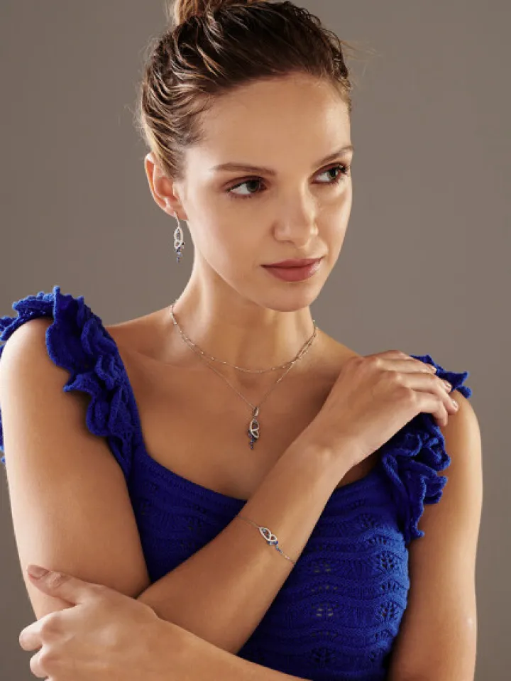 Srebrny naszyjnik z kuleczkami w roli elementów ozdobnych. Nowoczesny i uniwersalny krótki wzór można nosić jako samodzielny, delikatny dodatek lub łączyć go w modne, kaskadowe kompozycje z innymi naszyjnikami o różnych długościach. Design naszyjnika ze srebra próby 925 wprost zachęca do tego, aby eksperymentować i zestawiać go z różnymi biżuteryjnymi wzorami. W każdej odsłonie, minimalistycznej lub modowej, będzie doskonałym dodatkiem do wielu stylizacji. Dodatkowo długość naszyjnika można indywidualnie dopasować dzięki przedłużce.