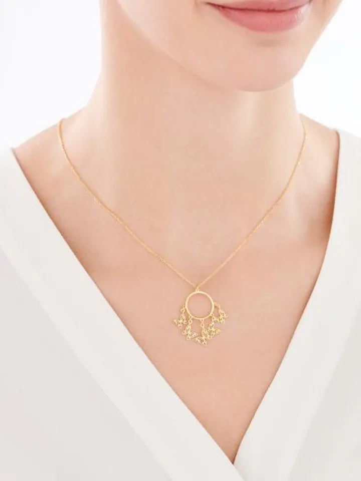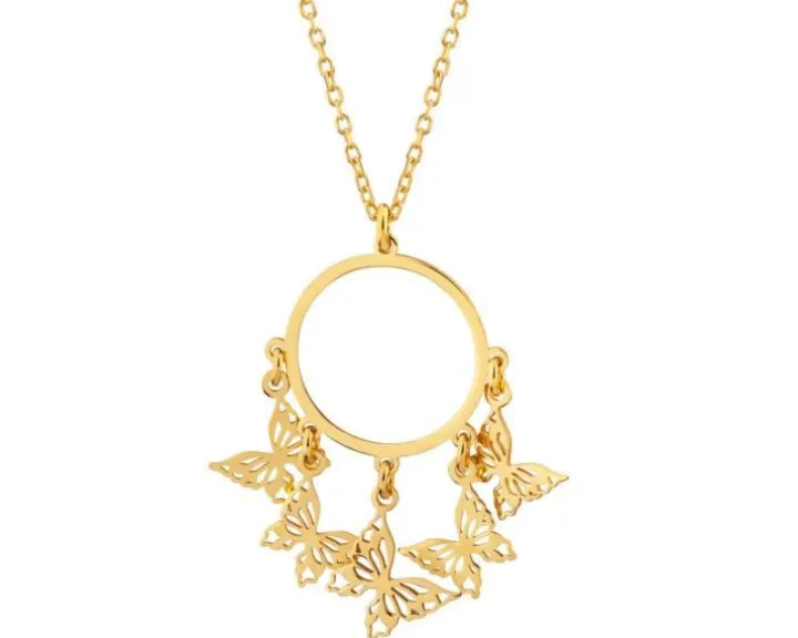 Pozłacany naszyjnik ze srebra, będący połączeniem minimalizmu kółka i romantycznego charakteru motywu motyli. Zakładając go masz pewność, że Twoja biżuteria nie pozostanie niezauważona. Wraz z pasującymi kolczykami i dobraną bransoletką, łatwo stworzyć biżuteryjny zestaw w prawdziwie wiosennym stylu, idealnym niezależnie od pory roku.