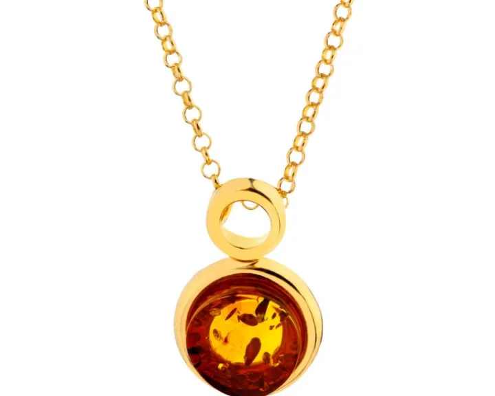 Naszyjnik srebrny z bursztynem – koła
