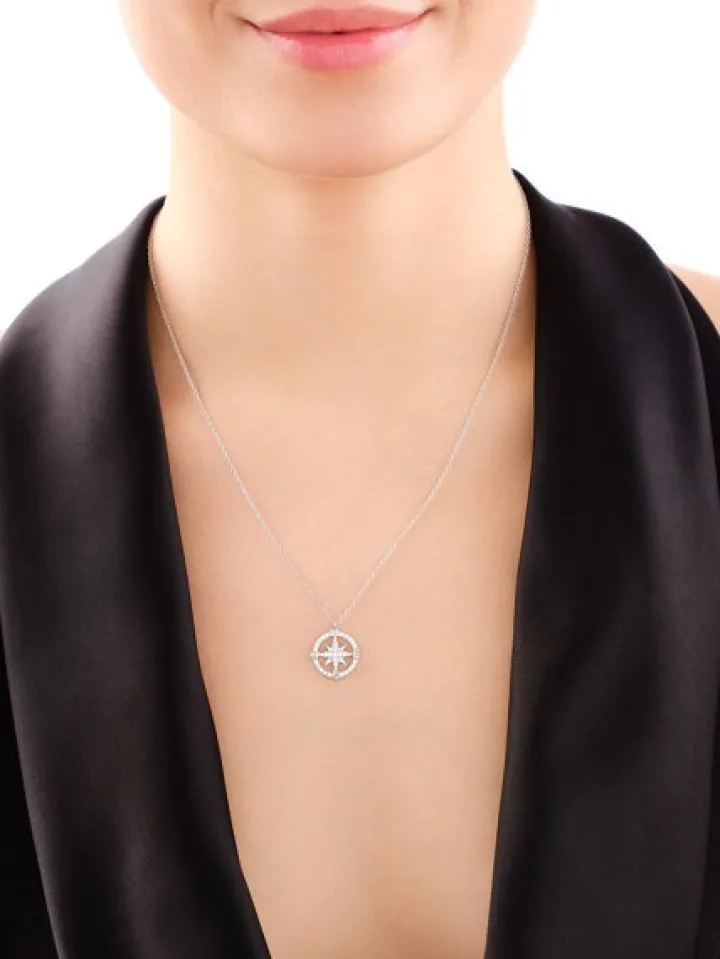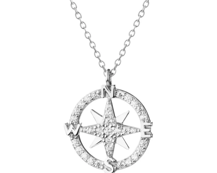 Naszyjnik srebrny z cyrkoniami – kompas