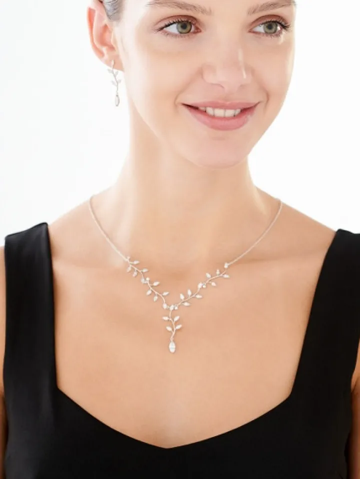 Naszyjnik srebrny z cyrkoniami – liście