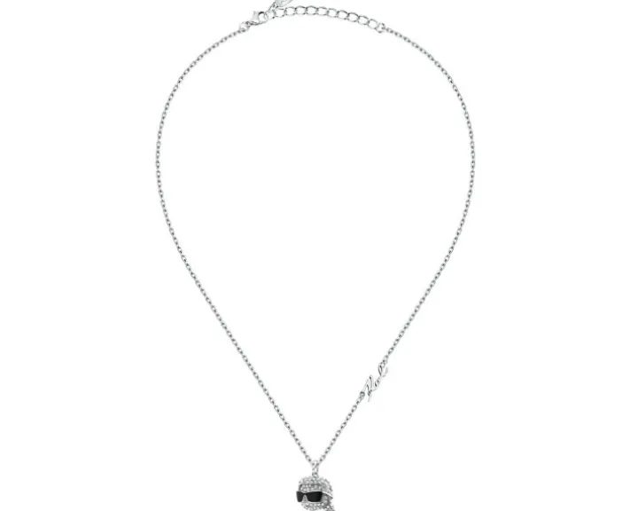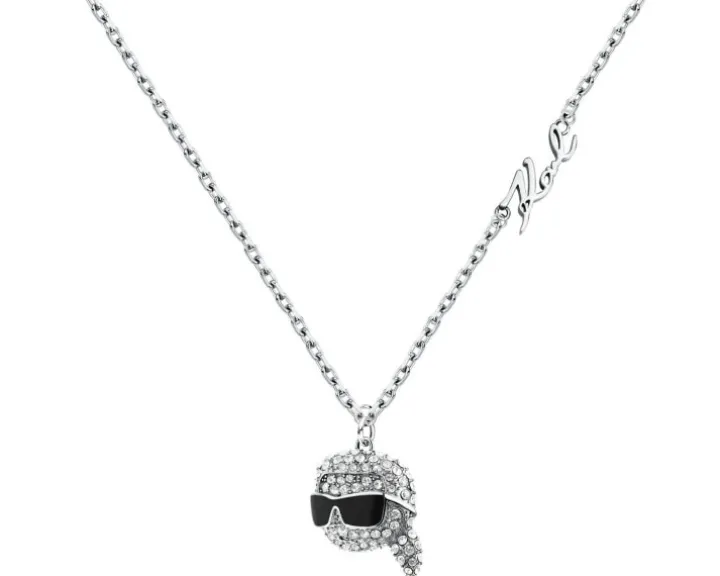 Naszyjnik ze stali szlachetnej z cyrkoniami i emalią – główka Karl Lagerfeld