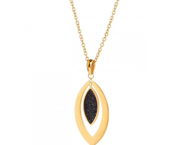 Naszyjnik wykonano ze stali szlachetnej i ozdobiono kryształami.