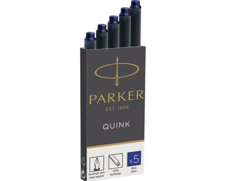 Ciesz się doświadczeniem pisania tradycyjnym piórem wiecznym i wygodą korzystania z naboi atramentowych. Wypełnione gładkim, bogato pigmentowanym, niebieskim atramentem naboje PARKER QUINK powstały specjalnie dla potrzeb piór wiecznych PARKER. Poznaj uczucie płynnego sunięcia po papierze, jakie zapewniają naboje z wysokiej jakości atramentem QUINK.