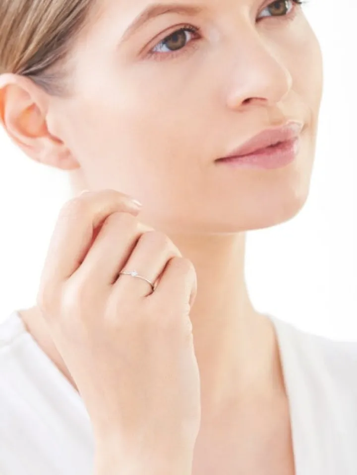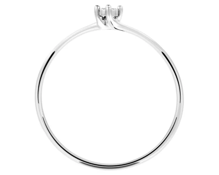 Chwila zaręczyn przypieczętowana diamentowym blaskiem. Filigranowy pierścionek zaręczynowy z białego złota, rozświetlonego brylantem. Cztery krapy oraz fasetowana otoczka sprawiają, że najpiękniejszy kamień zaręczynowy sprawia wrażenie większego i intensywniej lśni.