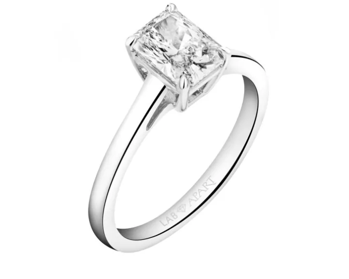 Jakość diamentów laboratoryjnych określana jest według tych samych zasad 4C (colour, clarity, cut, carat) jak w przypadku diamentów naturalnych. Apart, w trosce o Klientki i Klientów, wiele lat temu dodał piąte C – confidence, czyli pewność i zaufanie. Jest ono niezwykle ważne szczególnie teraz, kiedy w wybranych salonach dostępna jest biżuteria zarówno z diamentami laboratoryjnymi, jak i naturalnymi. Aby nie było wątpliwości, z jakim kamieniem mamy do czynienia, wprowadziliśmy specjalne oznaczenia produktów. Biżuteria z diamentami laboratoryjnymi oznaczona jest grawerunkiem „LAB” na złocie, a diamenty powyżej 0,20 ct mają widoczną pod mikroskopem inskrypcję LGD (Lab Grown Diamonds) na rondyście (poprzecznej krawędzi kamienia). Ponadto do każdego produktu dołączany jest certyfikat potwierdzający laboratoryjne pochodzenie diamentu, a do diamentów o masie od 1 ct dodawany jest certyfikat wystawiony przez międzynarodowe laboratorium gemmologiczne IGI.