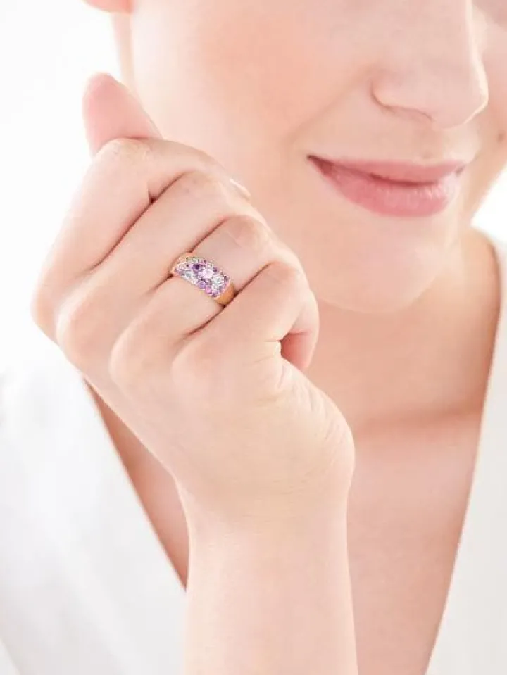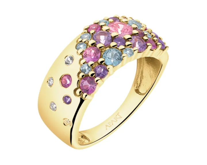 Złoty pierścionek z kolorowymi kamieniami” class=”img-fluid” width=”800″ height=”600″>