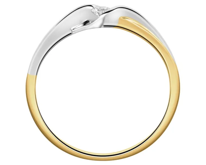 Chwila zaręczyn przypieczętowana diamentowym blaskiem. Subtelnie dekoracyjny pierścionek zaręczynowy z żółtego złota, ozdobiony ponadczasowym pięknem blasku brylantu. Kamień lśni w delikatnych objęciach rodowanych detali ze złota, które pozwalają w pełni podziwiać kunsztowne szlify.