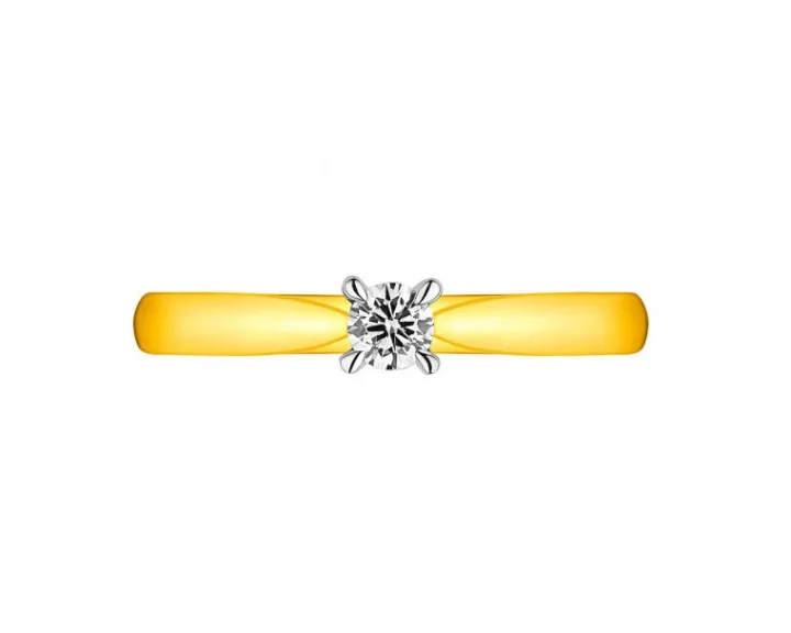 Chwila zaręczyn przypieczętowana diamentowym blaskiem. Delikatny pierścionek zaręczynowy z żółtego złota , ozdobiony lśniącym diamentem o brylantowych szlifach. Klasyczna forma pierścionka oraz oprawiony w cztery krapy kamień tworzą romantyczny wzór, który wyjątkowo podkreśli magię momentu zaręczyn.