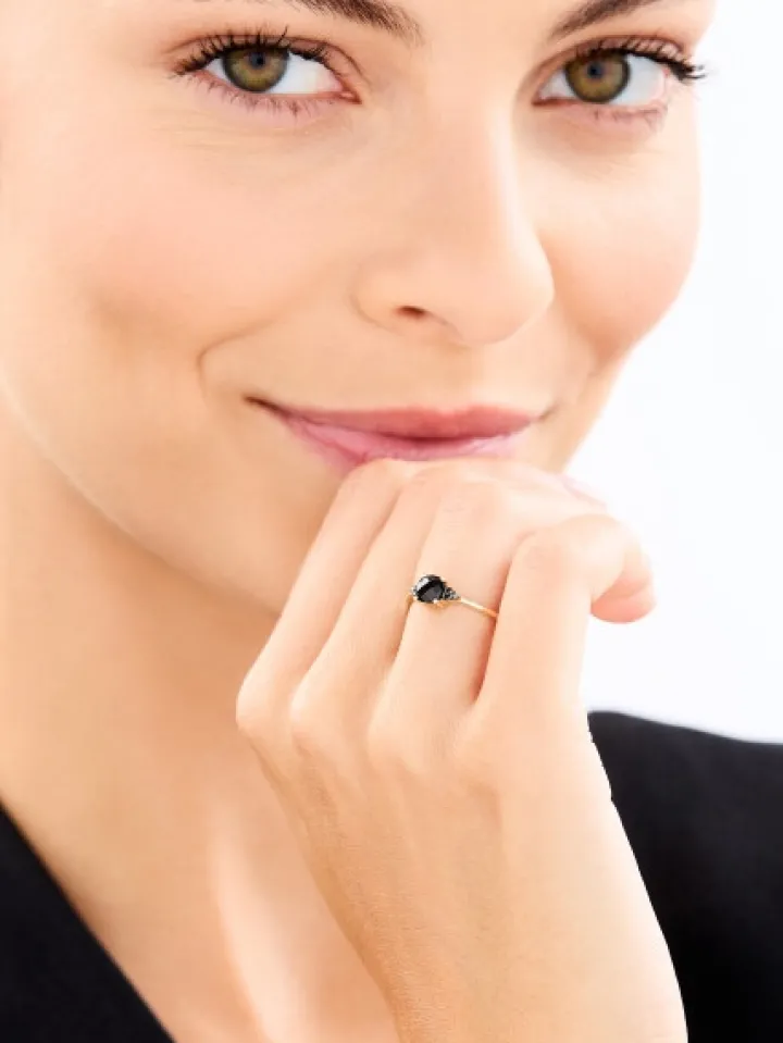 - Diament czarny – Kształt/Szlif: Brylant, 6 szt. o łącznej masie 0,04 ct, Czystość / Barwa: —/czarna poprawiana,