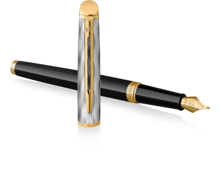 Czarny lakierowany korpus i pozłacane wykończenia modelu Waterman Hémisphère oddają romantyczny nastrój paryskiego nocnego nieba nad skąpanymi w złotym blasku kawiarniami i miejskimi latarniami, natomiast wyrafinowana, powlekana palladem nasadka z cyzelowanym wzorem fal nawiązuje do spokojnego nurtu Sekwany. Pozłacana stalówka pióra wiecznego ze stali szlachetnej dopełnia klasyczne elementy Waterman takie jak charakterystyczny klips na nasadce i zapętlone „W”. Każde pióro jest skrupulatnie ręcznie składane we Francji, prezentując galijski savoir-faire Watermana.