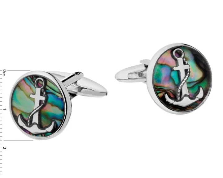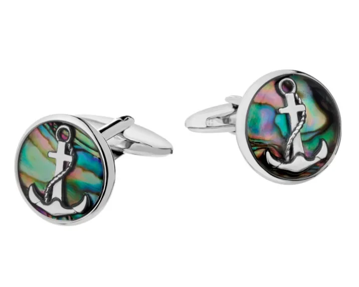 Spinki do mankietów ze stali szlachetnej i muszlą – kotwice
