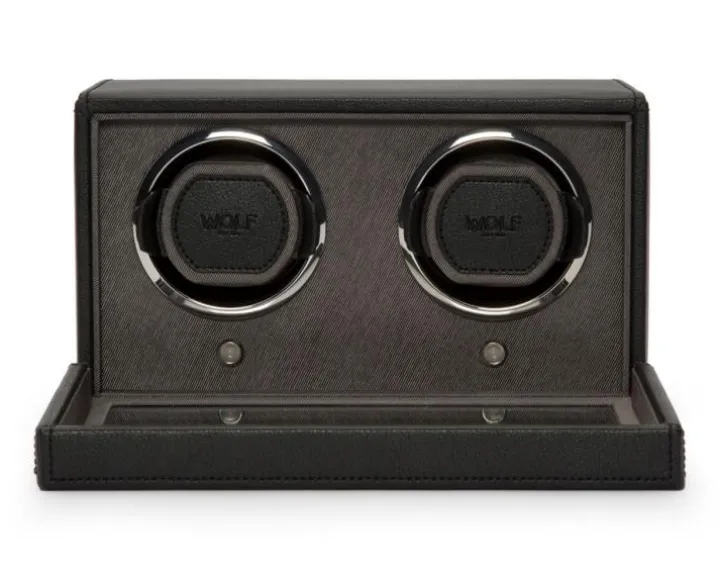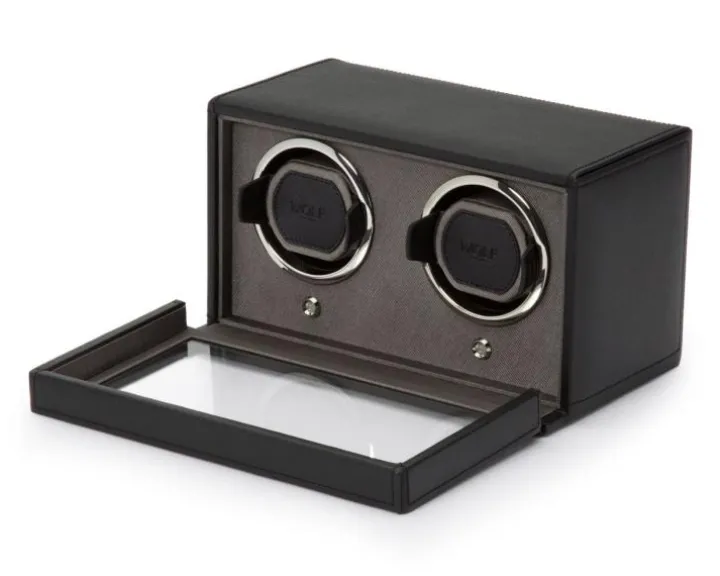 Rotomat o wymiarach 26 x 15,4 x 14,8 cm. Przeznaczony dla dwóch zegarków. Wykonany ze skóry wegańskiej.