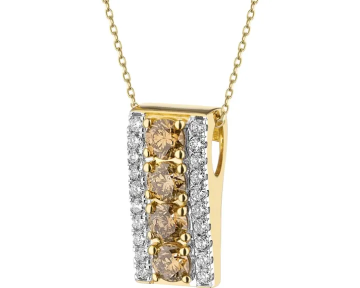 - Diament champagne – Kształt/Szlif: Brylant, 4 szt. o łącznej masie 0,74 ct, Czystość / Barwa: P1-P2/Champagne,