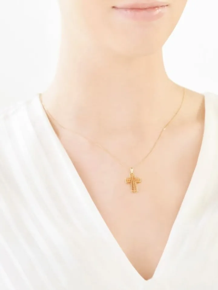 Zjawiskowo piękna zawieszka w kształcie ażurowego krzyżyka. Wyjątkowa forma ornamentu spotyka się tutaj z symboliką krzyża, tworząc niepowtarzalne połączenie wyrafinowanego piękna i uniwersalnych wartości duchowych. Niebanalny prezent na wiele okazji rodzinnych czy religijnych.