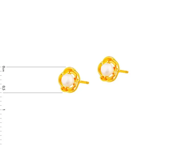 Złote kolczyki z perłami – kwiaty