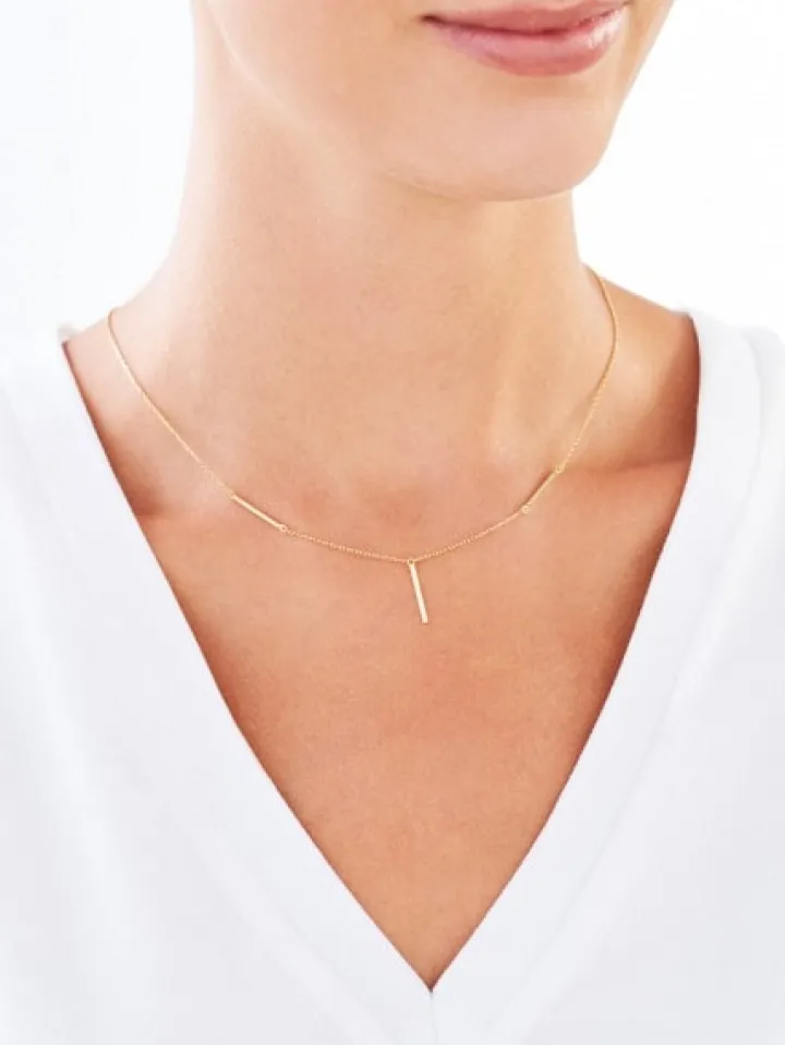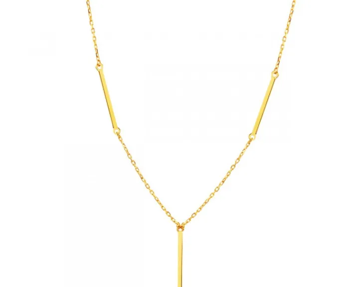 Złoty naszyjnik w minimalistycznym stylu. Ulotna forma naszyjnika z żółtego złota opiera się na delikatności łańcuszka i skomponowanych z nim detali. Z wzorem korespondują kolczyki oraz bransoleta z kolekcji; można go także zestawiać z wieloma innymi, subtelnymi naszyjnikami z różnych kolekcji.