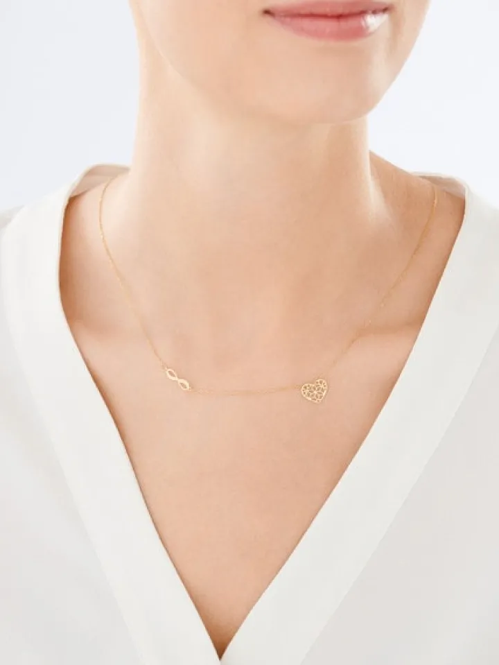 Złoty naszyjnik, ankier – nieskończoność, serce