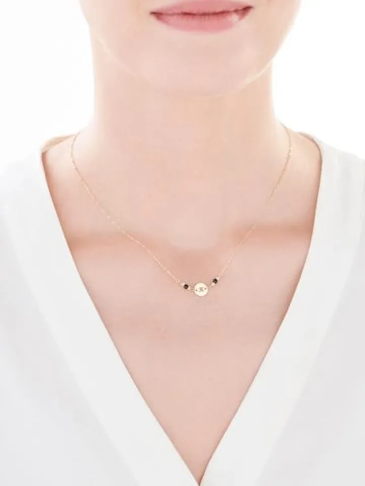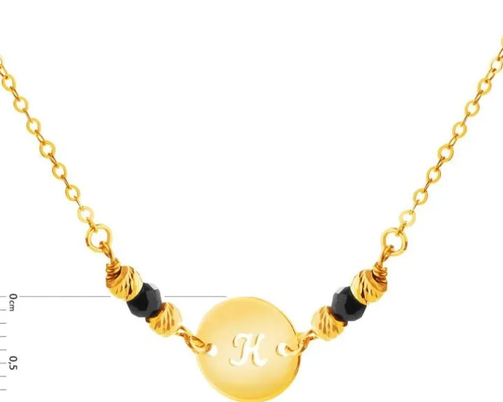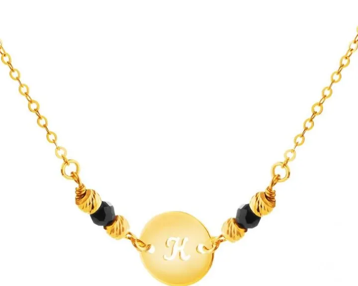 Złoty naszyjnik z cyrkoniami, ankier – koło, litera K