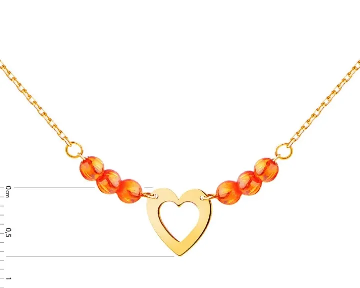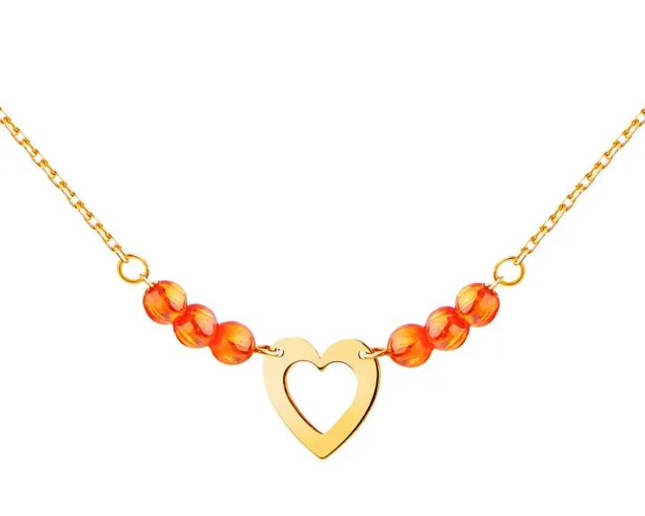 Złoty naszyjnik z kwarcami syntetycznymi, ankier – serce