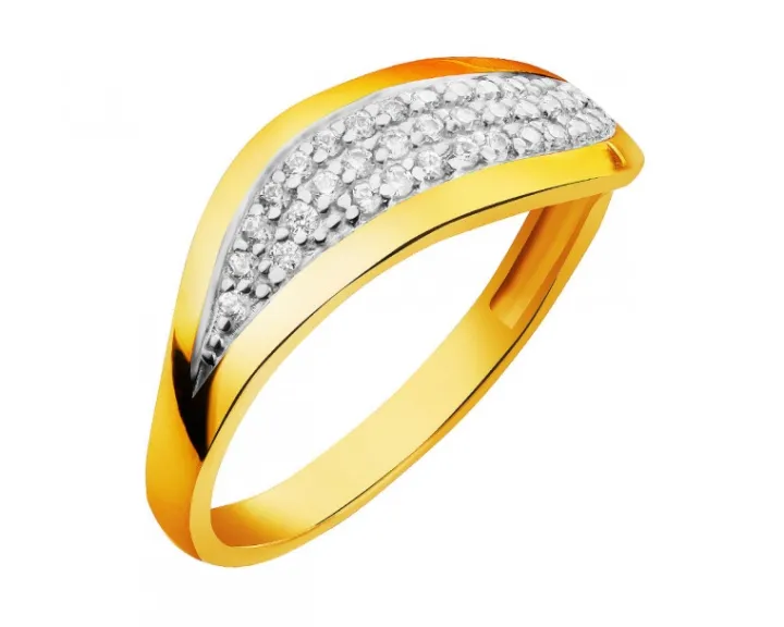Subtelny, lśniący kunsztownie oprawionymi białymi cyrkoniami pierścionek z żółtego złota. Intrygujący element ozdobny pierścionka wypełniono regularną kompozycją cyrkonii, tworzących niemal jednolitą taflę blasku. Złoty wzór to przykład romantycznego stylu w nowoczesnym ujęciu, dlatego spodoba się wielu kobietom.