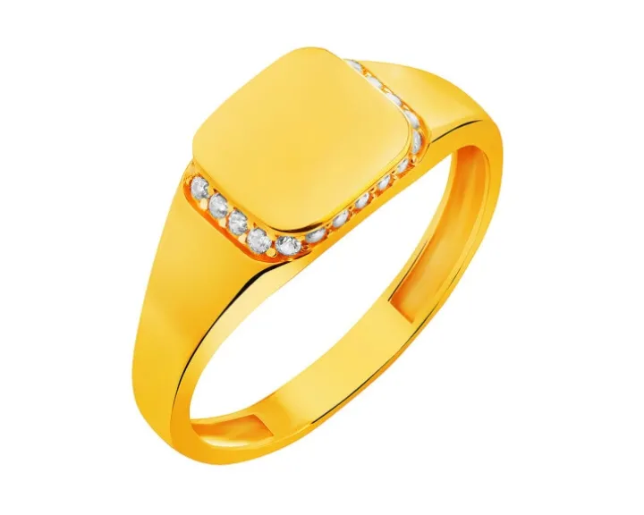 Złoty pierścionek z cyrkoniami – sygnet