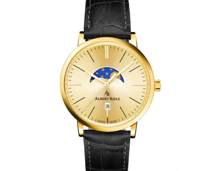 Cechy: zegarek szwajcarski, datownik, wskazówkowy, sekundnik, wskaźnik faz Księżyca