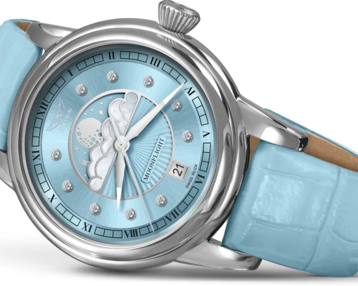 Cechy: datownik, wskazówkowy, sekundnik, wskaźnik faz Księżyca