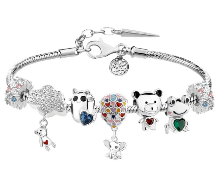 - Zawieszka srebrna beads z cyrkoniami i emalią – miś, chmurka, serce (AP529-3962)