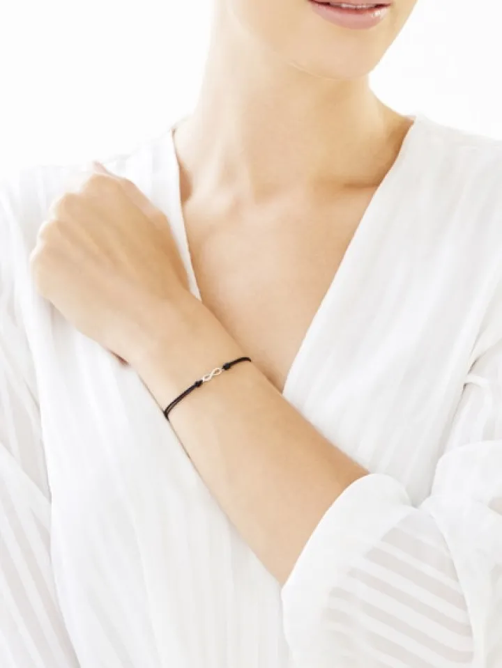 Kolekcjonuj radosne chwile! Delikatna bransoletka, ozdobiona miękkimi liniami złotego symbolu nieskończoności, pozwoli zatrzymać w pamięci szczęśliwe momenty, a diament uwieczni towarzyszące im emocje. Wyjątkowy charakter tej bransoletki podkreśla barwny regulowany sznureczek. Biżuteria ta doskonale współgra z innymi wzorami z kolekcji Fun Fun.
