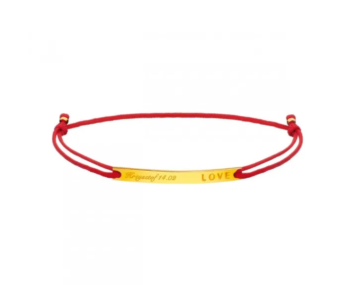 Kolekcjonuj radosne chwile! Delikatna bransoletka z minimalistyczną zawieszką, która dzięki możliwości grawerunku doda jej wyjątkowo osobistego charakteru. Subtelny detal z klasycznego złota to daje możliwość umieszczenia aż piętnastu znaków, w których można zawrzeć imię lub ważną datę. Ta opcja sprawia, że bransoleta będzie znakomitym upominkiem dla bliskiej osoby.