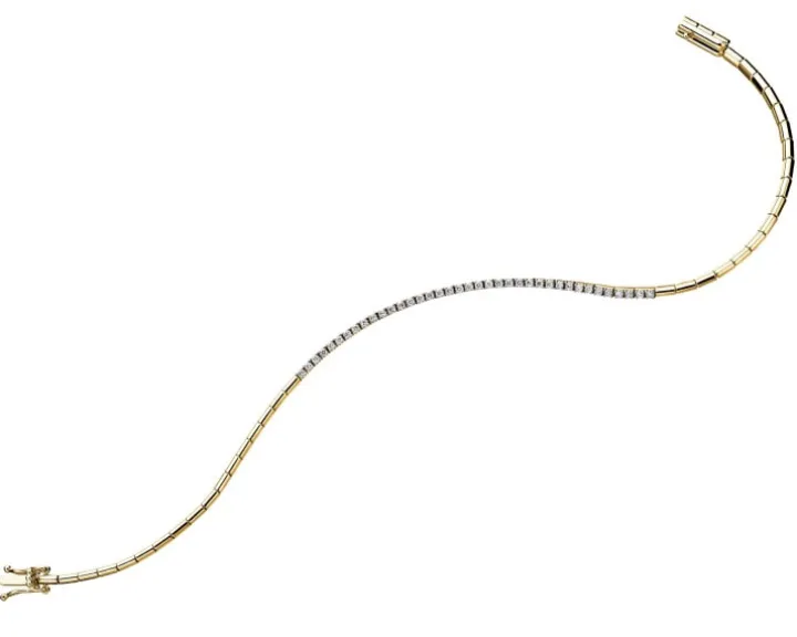 Elegancka, złota bransoletka z brylantami w ekskluzywnym wydaniu kolekcji Glamour. Klasyczne zestawienie wysokiej jakości złota próby 585 z doskonałymi diamentami dowodzi wykwintnej formy biżuterii od jubilera Apart. Delikatna bransoletka wyróżnia się wyrafinowanym charakterem, idealnie sprawdzając się jako dodatek dla kobiet poszukujących dyskretnej elegancji. Zmysłowy projekt podkreśla bogata inkrustacja w formie 38 diamentów o najdoskonalszym szlifie brylantowym. Misternie oprawione kamienie przykuwają wzrok intensywnym lśnieniem, któremu nie sposób się oprzeć. Luksusową bransoletkę nosić można nie tylko do efektownych, wieczorowych kreacji, ale także jako wyrafinowany dodatek na co dzień. W ten sposób zapewnisz sobie prestiżowy look, dzięki któremu wyróżnisz się z tłumu i poczujesz się prawdziwie wyjątkowo. Złota bransoletka z brylantami fantastycznie wygląda w zestawie z pierścionkiem, naszyjnikiem oraz kolczykami do kompletu.