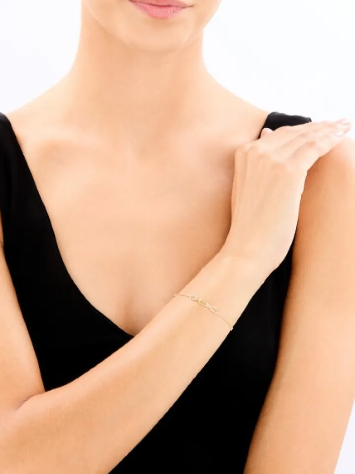 Efektowna złota bransoletka z diamentami, która łączy w sobie gorące trendy modowe i uniwersalny styl. Wzór oplata przegub dłoni delikatnym łańcuszkiem z żółtego złota próby 375, a wyrazistego charakteru dodaje mu element dekoracyjny w postaci motywu łańcucha o dużych ogniwach. Ten odważny design przełamują 4 diamenty o łącznej masie 0,01 ct oprawione po dwóch stronach niewielkich ozdobnych kółek. Dzięki takiemu rozwiązaniu, diamentowy blask będzie zawsze widoczny. Dodatkowo, bransoletka posiada regulację, umożliwiającą jej dopasowanie do przegubu. Diamentowa bransoletka z żółtego złota harmonijnie łączy szlachetność diamentów, nowoczesną elegancję i nutę ekspresyjnej estetyki. Wzór współgra z pochodzącym z kolekcji Simple Shine naszyjnikiem. Komplet z diamentami spodoba się jako wyjątkowy prezent każdej kobiecie, która kocha modę i lubi odważne dodatki.