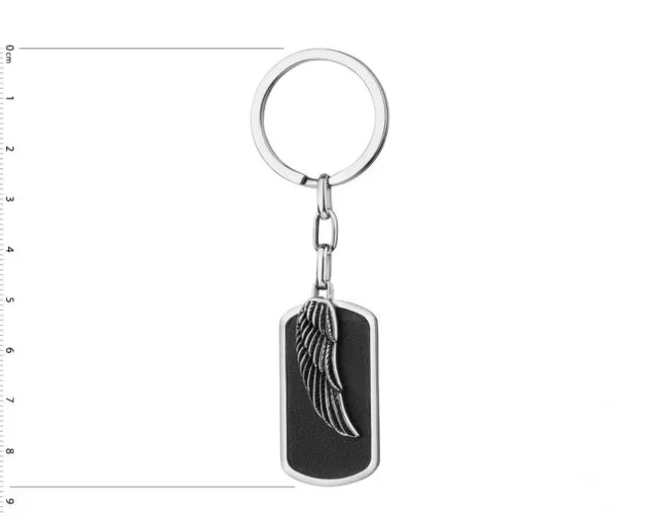 Brelok ze stali szlachetnej ze skórą – skrzydło