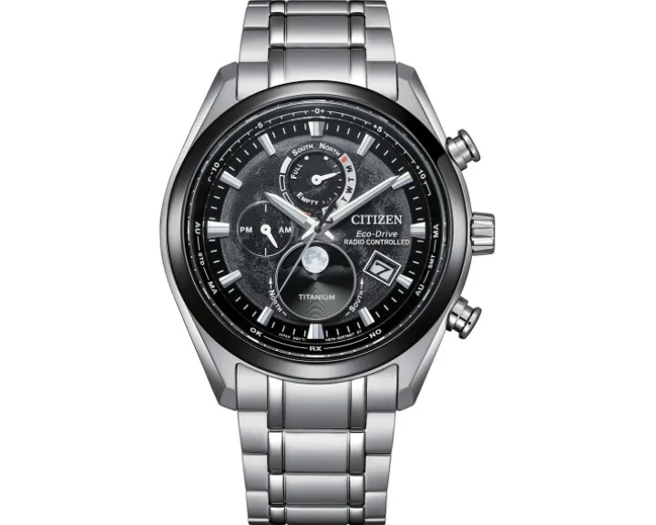 Cechy: datownik, wskazówkowy, sekundnik, wskaźnik 24-godzinny, wskaźnik dnia tygodnia, wskaźnik faz Księżyca, wskaźnik zużycia baterii